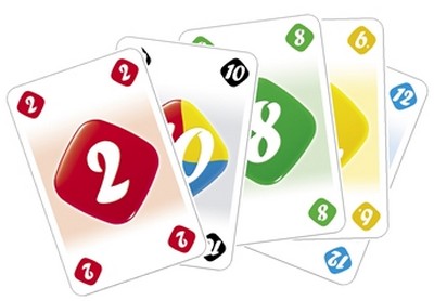 3、手札から1枚を必ず出します。このとき一度に3枚までカードを出すことができます。2枚以上を一度に出す場合は、全て同じ色でなければなりません。他プレイヤーは×印を付けることができません。