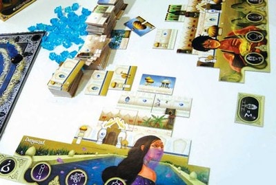 これを繰り返していき、5枚目を建設したら、後1手番ずつ行いゲームが終了します。各プレイヤーはボードのシンボルと、対応する宮殿のシンボルにしたがって勝利ポイントを計算し、さらに秘密の目的におけるポイントも加算します。