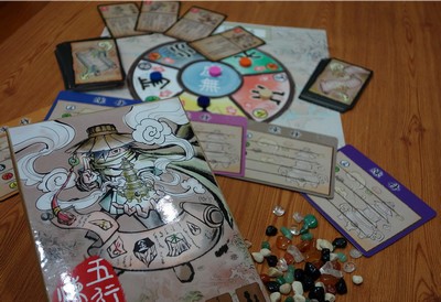 スタートプレイヤーから順番に五行のうち1つを選び、対応する元素を受け取ります。また術法カードを2枚とって自分の手札にします。