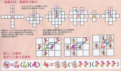ヴェロキラプトルは、2マスまで任意のマスだけ進めます。