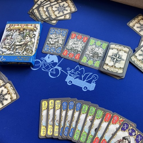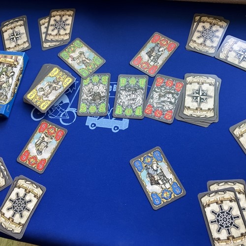舵輪カード人数に応じて準備し、よくシャッフルし、各プレイヤーに12枚ずつ配ります。