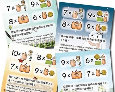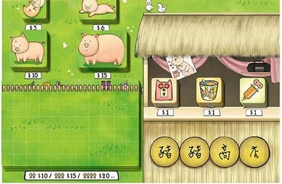 「ハッピーピッグ:幸運のブタ」は、プレイヤーは養豚業者となり、季節を通じで給餌/繁殖/購入/売却を行い、ブタを育成して出荷し利益を稼ぐゲームです。