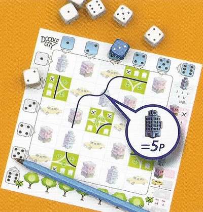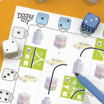 「ドゥードゥルシティ」は、街に道路を引いて都市計画をつつがなく行うダイスゲームです。