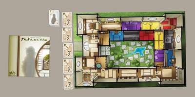 「タカマツ」は、サムライを移動させて、場内の自分の居室にサムライを入れてよい評価を得るゲームです。