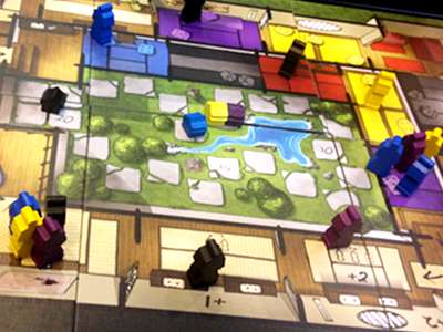ポイント:テーマはどうも史実のようです。サムライの色と部屋をよく考えてコマを動かすことが必要で、それを読んでより高い点数を獲得していきます。