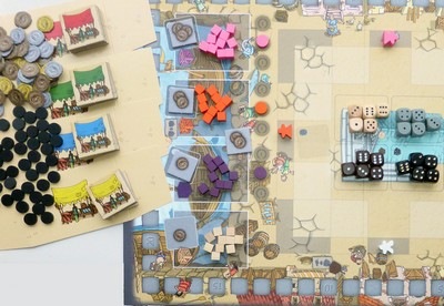執政官が開いたマスに止まった場合、5コイン払って自分の露店を置けます。また商品の内露店に止まったらそこを閉鎖させます。また商品のある露店に止まったら執政官に商品の数に対応した税金を支払わせます。
