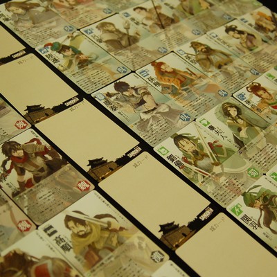 先攻プレイヤーから順番に、手札から武将カードを1枚ずつ順番に、城カードの横に出していきます。