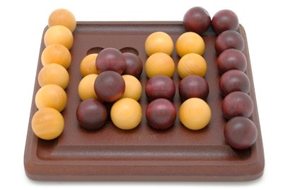 薄い色の玉を選んだプレイヤーが先攻となり、16ある穴のどこかに球を1つ置きます。