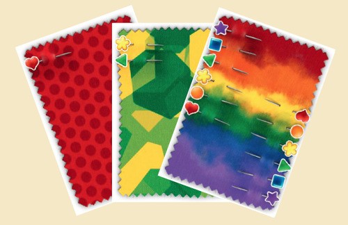 単色の生地カードは同色のブロックを作る為にしか使用できず、2色の生地カードはいずれかがブロックと合っていれば使用できます。手染めカードはどの色のブロックにも使用でき、各種の生地カードはブロックタイルを獲得する際にそれぞれを生地1枚として数えます。