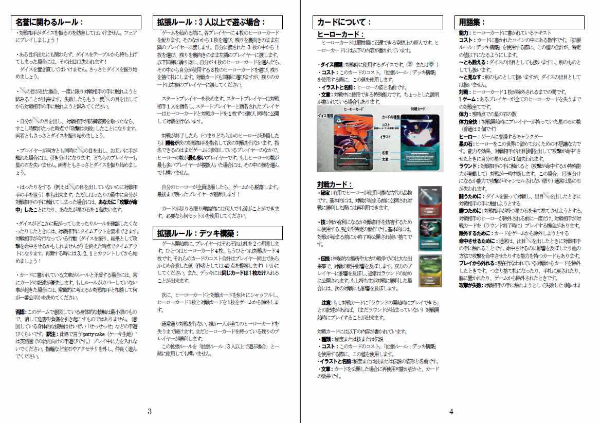 対戦では、対戦相手を世界から追放することを目指します。対戦は両方のプレイヤーが同時に行動しますが、対戦を始める前にスタートプレイヤーを決めます。まずスタートプレイヤーから、ヒーローカード1枚を公開し、能力を読み上げます。またカードの種類に応じて、この時点で対戦カードが公開されたり裏のままであったりします。