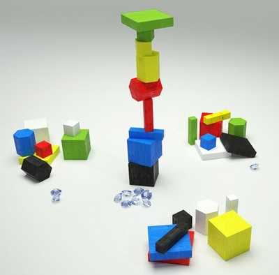 受け取ったプレイヤーはそのブロックを、中央にあるブロックの塔に組んでいきます。