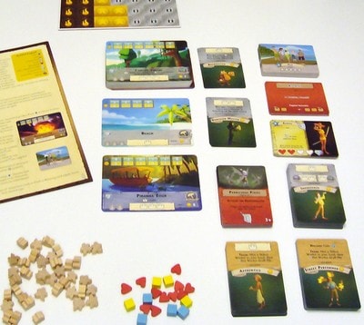 各プレイヤーは初期のワーカーカードの山札、資源トラックとマーカー、初期の施設および観光客を準備し、スタートプレイヤーを決めて皆と管理人マーカーを持ちます。