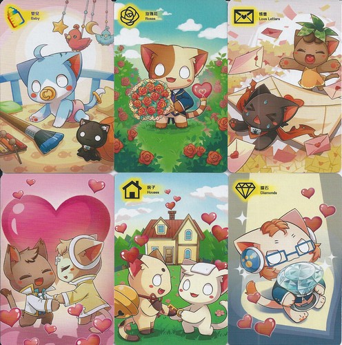 プロポーズの条件を満たしたプレイヤーは、「みゃん!みゃん!みゃん!」と宣言して手札を公開します。公開した手札に結婚カードを1枚加えてシャッフルし、ランダムにカードを1枚引きます。この時に好印象マーカーを持っていれば、追加でその枚数だけカードを引けます。