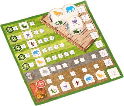 各プレイヤーには、自分の動物園を表すスコアシートがあり、ワニ1匹、ダチョウ2匹、ライオン5匹までの5種類の動物を入れるスペースがあります。