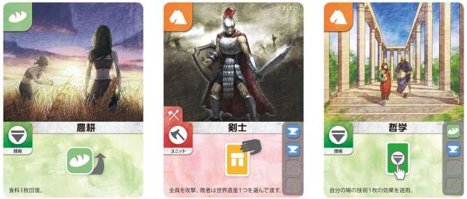 これを繰り返して、最後の世界遺産が購入されるか、最後の文明カードが購入されたらゲーム終了です。