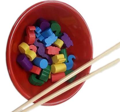 各プレイヤーはボウルから同じ距離に座り、箸を1膳ずつ持ちます。自分の前に小さな目標皿を置きます。
