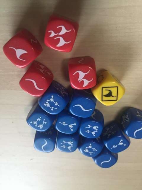 手番プレイヤーは、海岸ダイス7個を受け取り、黄色のサメ襲来マーカー1枚につき海岸ダイス1個を減らします。