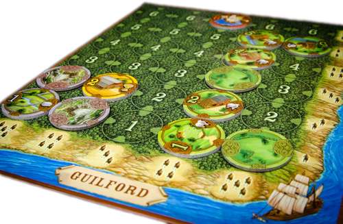 ゲームボードをテーブルの中央に置き、ゲームボードの資源トラックの0の欄に、資源マーカーを置きます。