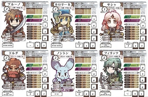 プレイヤーは、キャラクターのうちからどれかを選び、それぞれに準備された装備、行動、魔法などのカードを受け取ります。