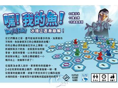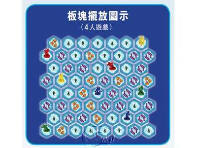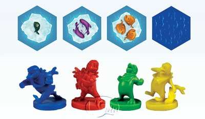 各プレイヤーはペンギンを人数に応じて持ち、順番にサカナが1つ書かれたタイルに、自分のペンギンを1つずつ配置します。