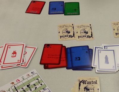各プレイヤーは海賊を選び、人数と同じ枚数の船員カードとプレイヤーシートを受け取ります。