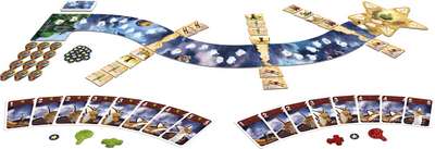 各プレイヤーは自分の色を選び、8枚のカードセットを持ちます。また星トークンと自分の色の飛行帽も持ちます。