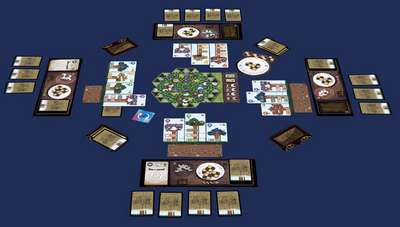 「ヴィレッジ・オブ・ファミリア」は、カードの使用や受け渡しによって、使い魔のために森を整備していくゲームです。