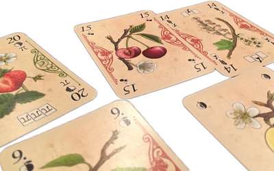 「プラムの法則」は、果物をテーマにした、特殊カードなどを動かし6トリックを行うトリックテイキングゲームです。