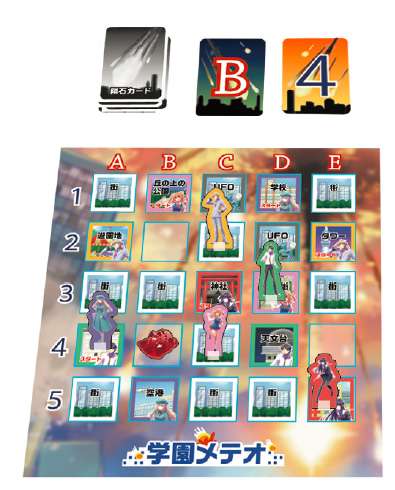 隕石カードをよく切り順番に座標が構成できるように引いて、その座標に隕石コマを置きます。
