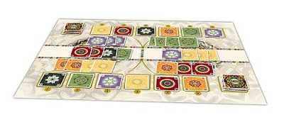 このゲームでは、プレイヤーは色鮮やかなカードを、布製のプレイマットに描かれた2つの曼荼羅に置いていきます。