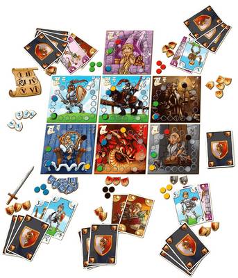 テーブル中央にボードを広げ、、羊皮紙ボードのラウンド1の箇所に砂時計トークンを置きます。