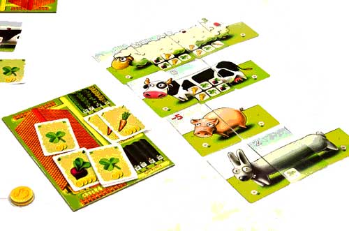 各プレイヤーは農場ボード1枚と動物のカードのセットを準備し、最初は不幸の面を上にします。