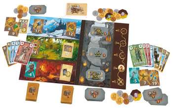 手札の対応する冒険者をすべて公開し、各プレイヤーは自分の出した冒険者のカードの数値を合計し、手札のアクションカードの効果でそれらを増減します。この結果もっとも数値の大きいプレイヤーが困難なほうの財宝を獲得し、数値の小さなプレイヤーが簡単な方の財宝を獲得します。