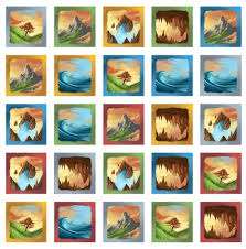 動物タイルを脇に置き、25枚の景色タイルを裏向きにしよく混ぜ、5x5に並べます。