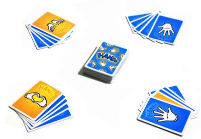 初心者会で7人でプレイ。初めは静かに淡々と進みましたが、1度両手のカードが出てから大盛り上がり。「そっとおやすみ」などのように、出遅れた一人を「やーい」するいいアクションゲームです