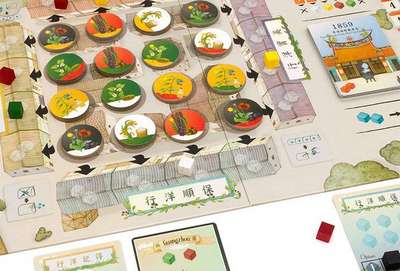 「ダーダオチェン」は、産物タイルを交換したり裏返しして、産物を集めて偉大なる商人となる、パズルと発展のゲームです。