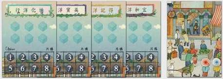 フェイズ4、購入とアクション:産物を使用して貨物船カードや建物カードを購入して効果を適用したり、産物を支払い廟を購入したり、産物の2対1交換をしたり、オールマイティですがペナルティのあるアヘンを購入したり、歴史事件の効果を適用できます。