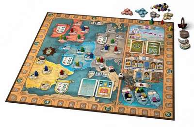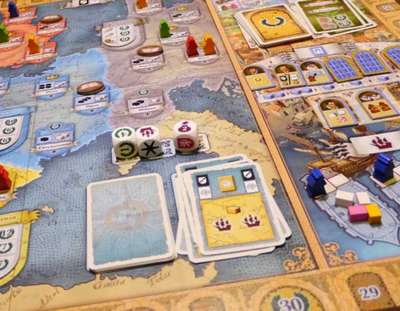 最初に交易でコマが残っていれば商品を2つ取り、人物タイルの再分配を行います。