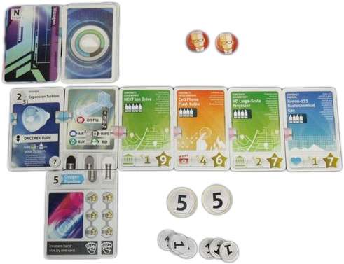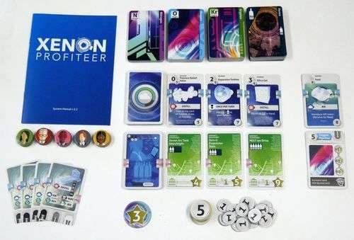 「キセノン・プロフィッター」は、各自のシステムをアップグレードさせてキセノンの分離を行い、契約を完了させてより多くのキセノンポイントを獲得するデッキ構築ゲームです。