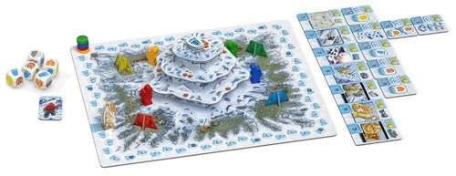 各プレイヤーは自分の色を決め、登山家と勝利点マーカーとベースキャンプを受け取ります。