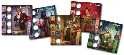各プレイヤーは、発明家のチームのタイル4枚と対応するキューブを持ちます。