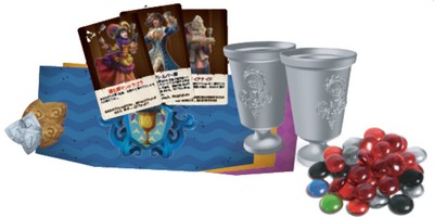 自分の色のコースターリングをゴブレットにつけ、中央に置き、各プレイヤーは自分の前に中が見えないように1個ずつ置きます。