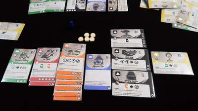 各文明カードには、固有のさまざまな効果だけでなく、累積的に各プレイヤーに経済的利点をもたらす生産アイコンや、相手を圧倒する軍事アイコンなどがあります。新規の文明カードを獲得とすると、既に保有する同じカテゴリーのカードのほとんどは覆われ、その主たる効果は失われますが、生産アイコンだけは覆われず、ゲーム中ずっとその効果を発揮し続けます。
