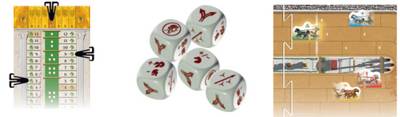 速度の目に対応して速度を変更した後、場合に応じて疲労の目の分だけダメージを調整し、スピードとダメージを記録します。スピードトラックの数に応じて前進させます。またレーン変更の目が出ていればレーンを変更できます。コーナーにある数字を越える場合には越えた分だけダメージを、また衝突した場合は双方にダメージを受け、衝突の処理を行ないます。