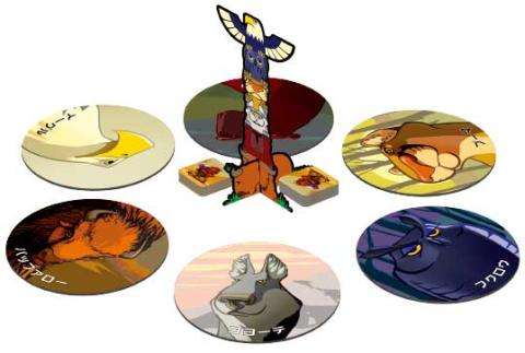 6枚の動物タイルから1つを選び、それをトーテムポールの脇に置き、その上にグレートシャーマンを配置します。残りのタイルを含め、円状に配置します。使用するカードを準備し、各プレイヤーに配り切り手札にします。
