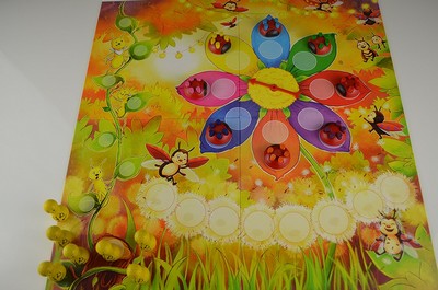 手番になったらルーレットを回し、止まったてんとうむしを別の花びらの内側に置き、天道虫同士を向かい合わせます。てんとうむし同士が向き合えば、お互いのほしを交換できます。交換できたら再び別のてんとうむしに対して再び動くことが出来ます。
