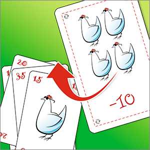 獲得したカードの中にあるにわとりのカードにある卵の絵が1つマイナス1点となります。