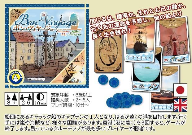 「ボン・ヴォヤージュ」は、カードから次を予想し、他のプレイヤーの動向を考え、船員をどう使うかを決める読みのゲームです。