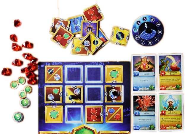 各プレイヤーは個人ボードと意志力ダイヤル、魔力の欠片を準備します。ダイヤルは3にします。