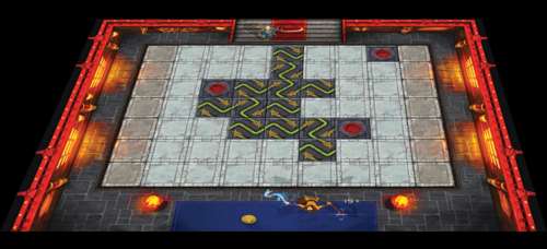 石の面を上にして龍タイルを3枚ゲームボードのマスにランダムに置きます。